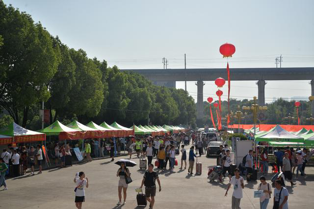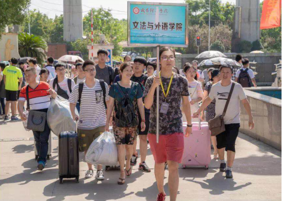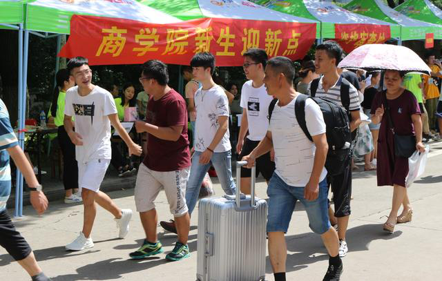 在成功广场旁的迎新点,标有各个学院名称的迎新站点整齐有序排开,师生们用亲切的笑容、周到的服务欢迎2018级新同学。搬运桌椅,搭帐篷,拉横幅,去车站接人,陪同新生交费、办校园卡、帮拿行李、入住宿舍、领取军训服.....千余名迎新志愿者们忙碌在迎新一线。